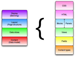 Finally we come to the top layer of the stack: the display. This is the theme layer of Drupal, about which much is written elsewhere. Although the line between layout and display is sometimes fuzzy, where possible, it is good to try and treat them as separate.